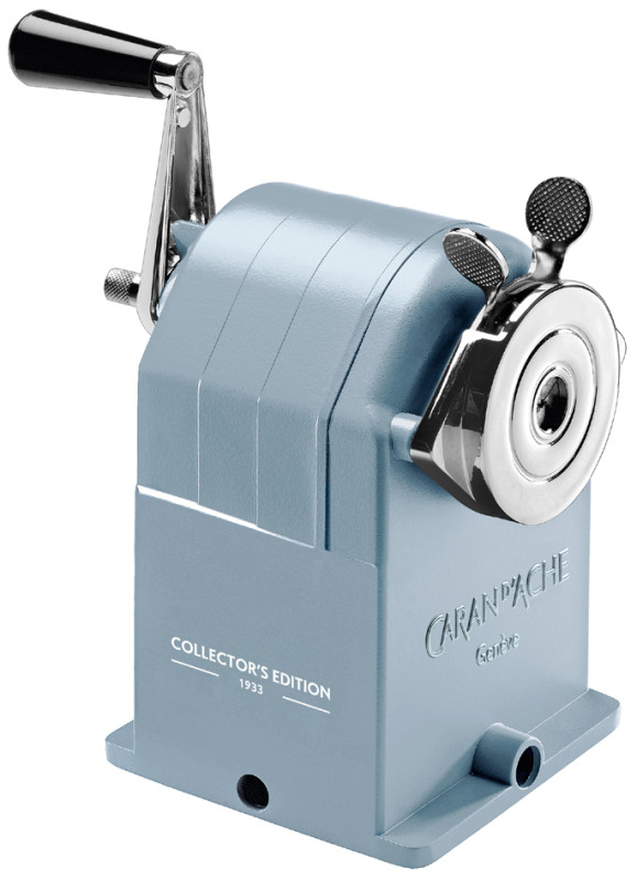 en métal, boîtier revêtu d'un bleu glacier irisé, attributs, nickelés, pour crayons ronds & hexagonaux de diamètre de 4 à , 10 mm, fraise interchangeable, possibilité de réglage du, type de pointe, dans une boîte cadeau en carton, (CC0455.025)