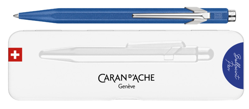 largeur de tracé: M, couleur de tracé: bleu, corps hexagonal, en aluminium, clip flexible en métal, mécanisme rétractable,, dans un étui métal extra plat, fermeture magnétique,, finition satinée premium, rechargeable avec la mine Goliath, (849.591)