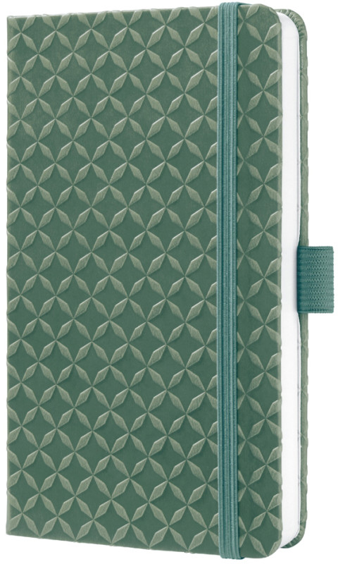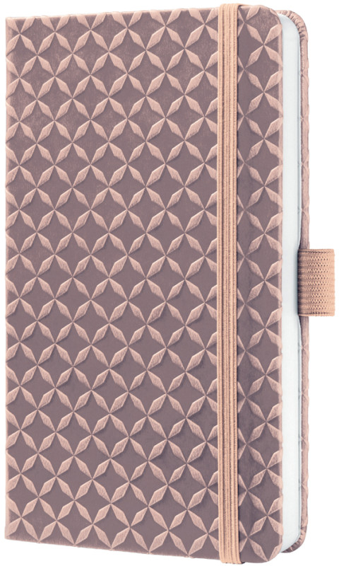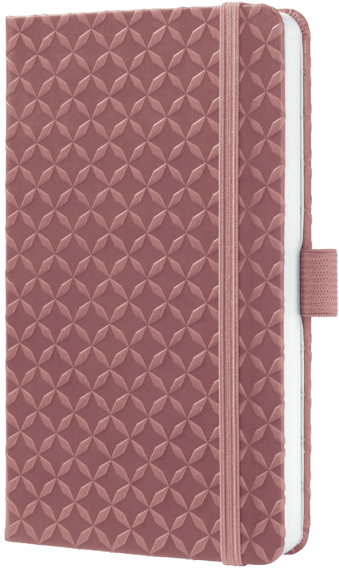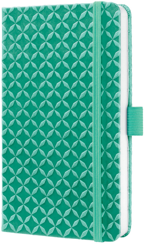 95 x 150 mm, liniert, 80 g/qm weißes Papier, Kunstleder-, Einband mit geprägtem Design, 16 Blätter mit Mikroper-, foration, Gummibandverschluss, Stifteschlaufe, Einsteck-, fach, Leseband, mit Fadenbindung, 174 Seiten, (JN138)