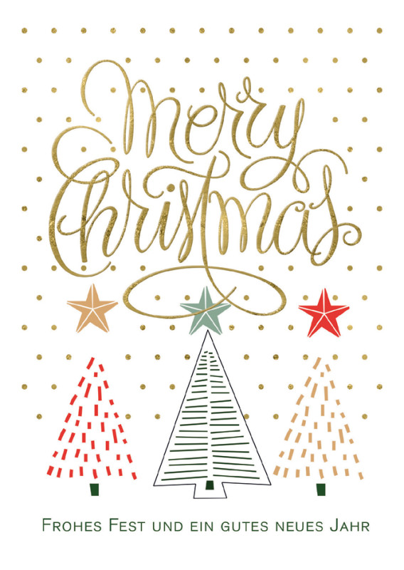 unverbindliche Preisempfehlung auf Verpackung: 2,95 EUR, Format: 120 x 170 mm, foliert, inkl. Umschlag grün, (24-10245), , Text: GOD JUL, FROHES FEST, JOYEUX NOEL, MERRY CHRISTMAS,