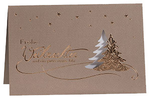 Format: 115 x 170 mm, aus Naturkarton setzt Weihnachtsgrüße, in Kupferfolienprägung perfekt in Szene, Ausstanzung in, Weihnachtsbaumform, inkl. Hülle und Einleger, (88810079),