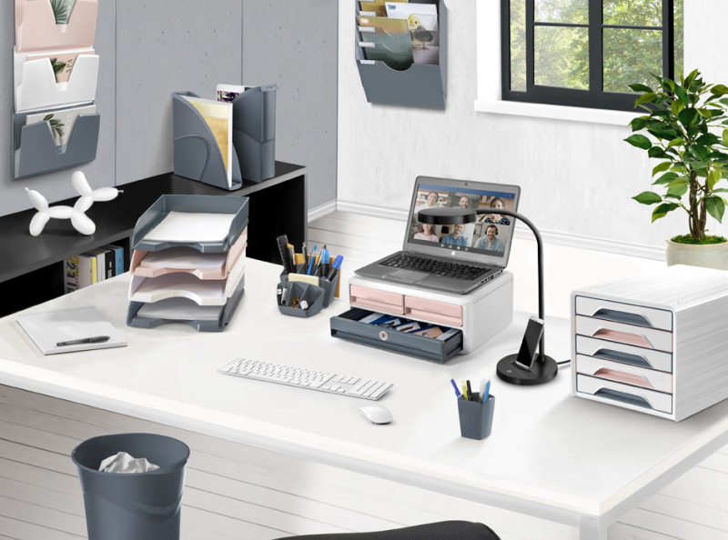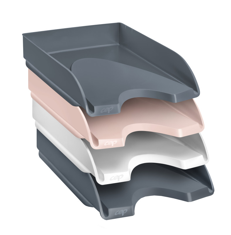 en polystyrène, superposable, avec large fente, dimensions:, (L)348 x (P)257 x (H)66 mm, assorti dans les couleurs: 2 x, gris orage, 1 de chaque en rose poudré, blanc arctique, contenu: 4 pièces, (200+*4 Min / 1020041681)