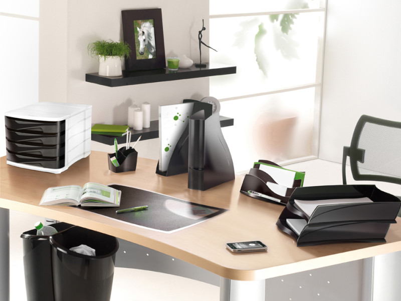 •2 compartiments hauts, 1 au milieu et 1 compartiment pour des petits objets de bureau