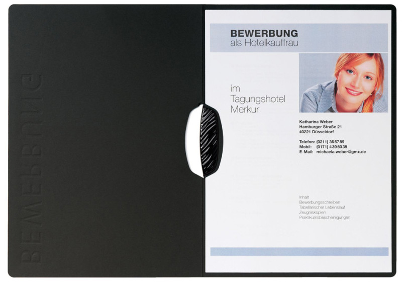 ------------------ für den Markt: D / L / A / CH -----------, 2-teilig, erhabene Prägung 'BEWERUNG' auf dem Vorderdeckel,, mit Kunststoffklemme, (22007-04),