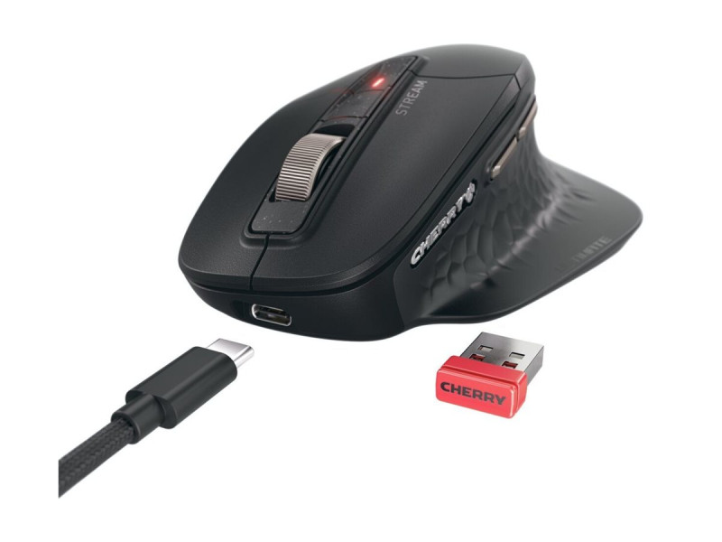 CHERRY STREAM Ultimate - Souris - ergonomique - pour droitiers - optique - 7 boutons - sans fil, filaire - 2.4 GHz, Bluetooth 5.2 - récepteur sans fil USB - noir