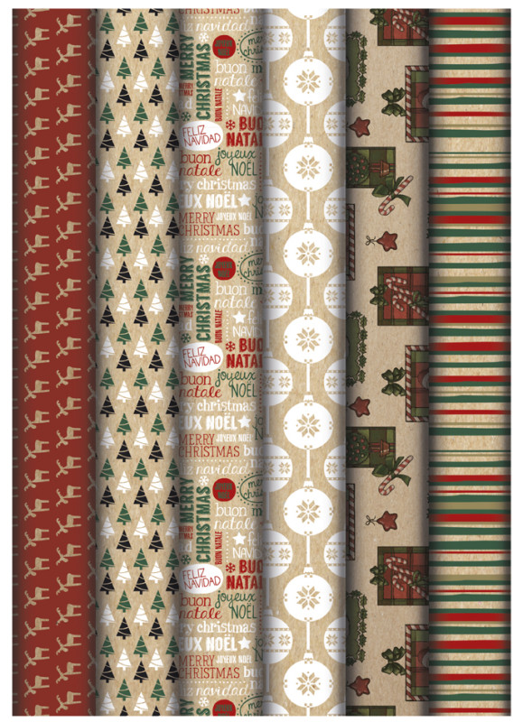 papier kraft à 100 % en papier recyclé, 60 g/m2, dimensions: (l)700 mm x (L)2,0 m, assorti en 6 motifs, en paquet de 60 rouleaux dans un présentoir en carton, (223799C),