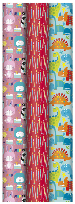 papier standard 57 g/m2, dimensions : (l)700 mm x 2,0 m,, assorti dans 3 différents motifs, sur rouleau,, en paquet de 60 rouleaux, (211930C),