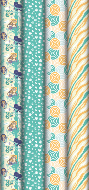 papier kraft blanc, 60 g/m2, dim.: (l)700 mm x (L)2,0 m,, assorti en 4 motifs différents, en rouleau,, en paquet de 30 rouleaux, (214005C),