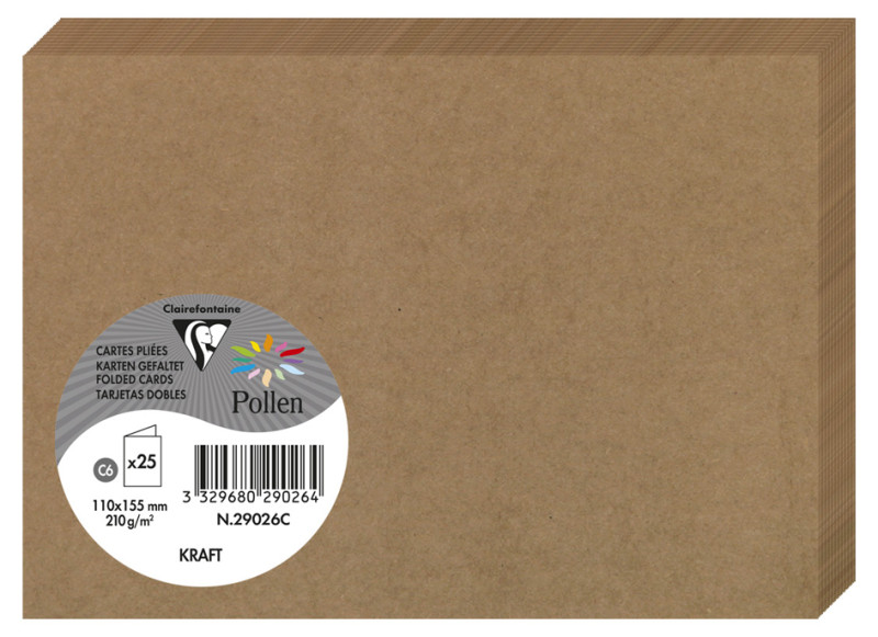 Papier kraft 200 g / mètre carré, dimensions: 110 x 155 mm, pH neutre, sans acide, non blanchie, recyclable, biologiquement dégradables, convenant pour les imprimantes à jet d'encre et laser, contient 25 cartes (29026C)