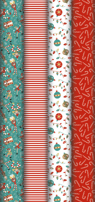 Standardpapier, 80 g/qm, Maße: (B)700 mm x (L)2,0 m, sortiert in 4 verschiedenen Motiven, auf Rolle, gepackt zu 30 Rollen im Displaykarton, (202110C),