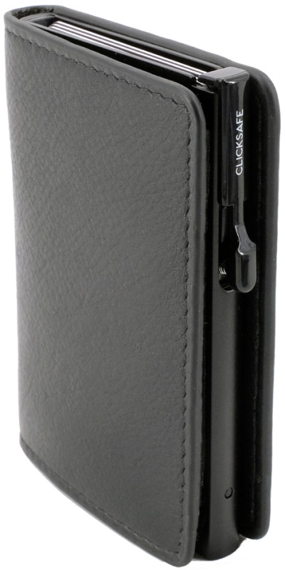 marron, porte-cartes sécurisé avec bouton-poussoir et, protection RFID, 6 poches pour cartes, 1 poche à fermeture, éclair pour pièces, 1 poche pour billets, en alumininium &, cuir véritable, dimensions: (L)65 x (P)15 x (H)95 mm,, (986305)