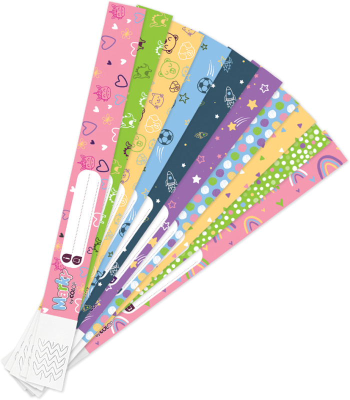 bracelet SOS, assorti en 10 designs, avec champ inscriptible, pour le nom et le numéro de téléphone, bande adhésive pour, une attache rapide, résiste à l'eau et aux UV, contenu: 20 bracelets + 1 marqueur, noir, (169876)