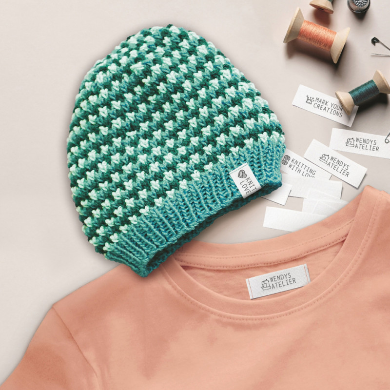 à coudre sur les créations personnelles, ne s'effiloche pas,, prédécoupé, scellé, en satin, lavable jusqu'à 60 degrés,, dimensions: 55 x 16 mm, contenu: 40 pièces, (170193)
