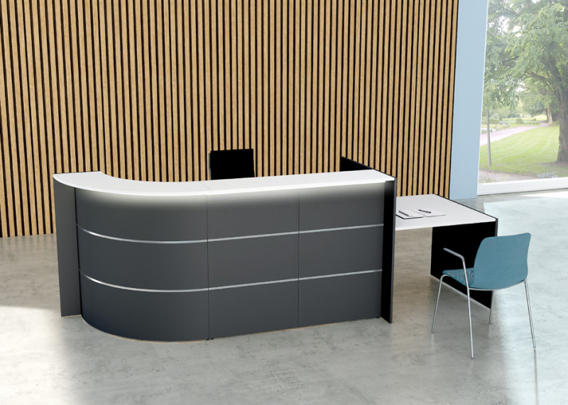 elektrische Höhenverstellung: 760 - 1.050 mm, Holz-/Stahl-, Konstruktion, Arbeitsplatte: (T)800 x (H)19 mm,, 2 Durchlässe, Front weiß mit Edelstahlstreifen /, Wangen anthrazit, Maße: (B)3.190 x (T)950 x (H)1.120 mm, (21360232)
