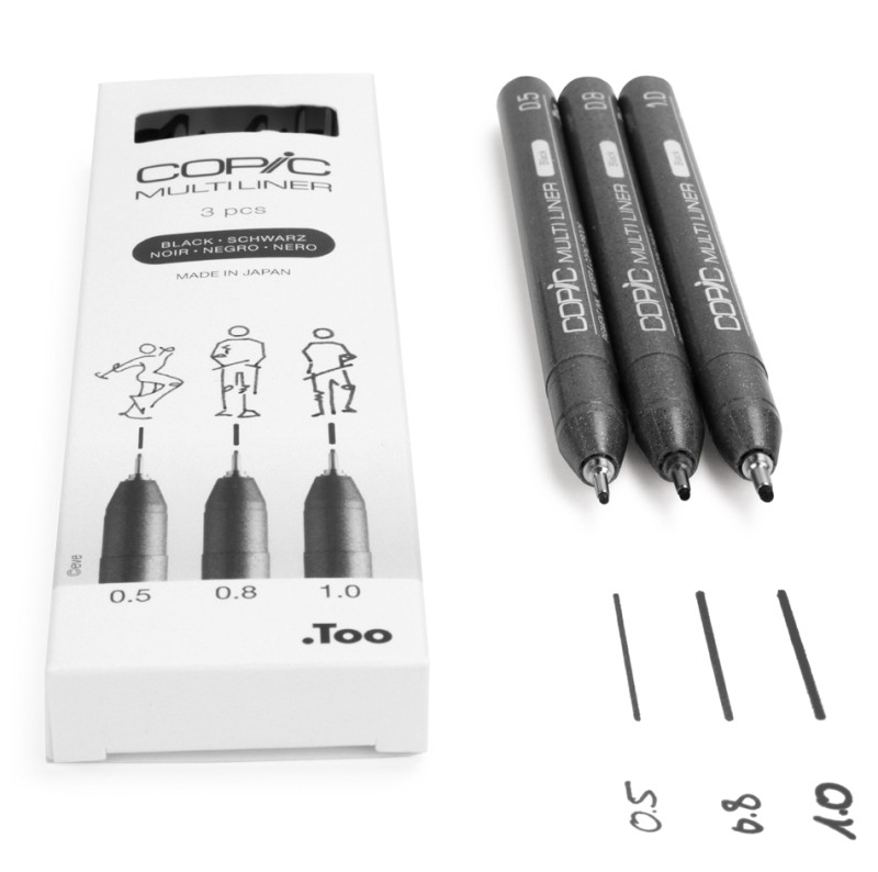 encre pigmentée sans acide, ne s'efface pas, ne s'estompe, pas, pour esquisses et dessins, assorti en 3 épaisseurs de, trait: 0,5 / 0,8 / 1,0 mm, contenu: 3 Multiliner, (22075632)