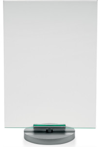 en polystyrène transparent, avec un socle élégant en argent,, présentation sur les deux faces,, dimensions: (L)153 x (P)50 x (H)235 mm, (691201),