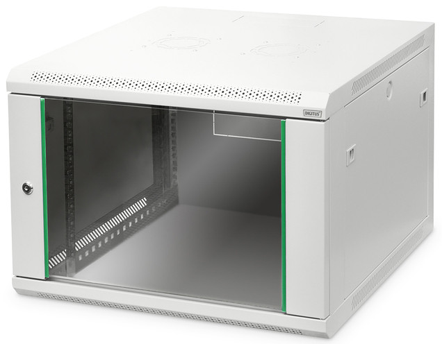 RAL 7035, en tôle d'acier solide 0,8-1,2 mm, verrouillable, porte en verre de sécurité, des parties latérales de protection IP20 amovible, des fentes d'aération pour l'aération et la désaération active et passive, dimensions: (B) x 600 (T) x 600 (H) 416 mm, couleur: gris clair (DN-19 07U-6/6-CE)