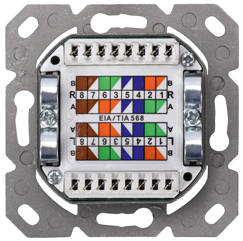 •installation de câble par broches LSA, code couleur selon EIA/TIA 568B