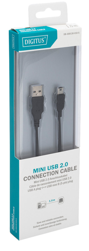 Connecteur USB - USB-A, longueur: 1,0 m hangar, hotte: surface de contact de nickel, le câble de couleur: noir, Connexion Couleur: noir, emballage sous blister (DB-300130-010-S),