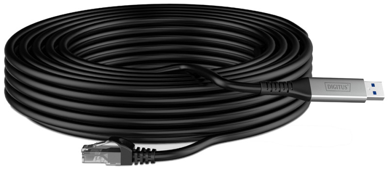 couleur: noir, connexion: USB-A mâle - RJ45 mâle, vitesse:, 10/100/1000 Mpbs, cat. 6A S/FTP, version USB: USB 3.2 Gen1,, rétrocompatible, Plug & Play, boîtier aluminium, diamètre, extérieur: 6,2 mm, (AK-300600-050-S)
