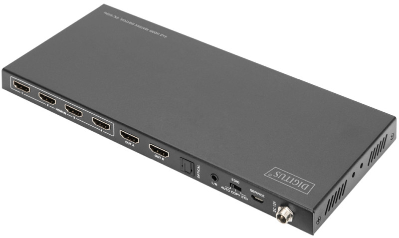 prise en charge de la 4K2K/60Hz, bande passante de la vidéo, 18 Gbit/s, HDMI 2.0, gestion EDID, boîtier métallique, pour, montage mural, (L)251 x (P)105 x (H)20 mm, contenu de la, livraison: commutateur, bloc d'alimentation, télécommande, (DS-55509)