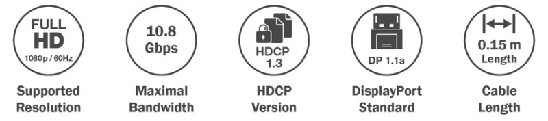 mini DP Stecker - HDMI-A Kupplung, doppelt geschirmt,, Kontaktoberfläche: vernickelt, Haube: vergossen,, Kabel/Anschlüsse: weiß, (AK-340411-001-W),