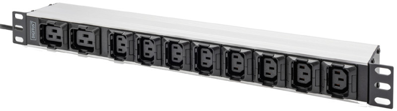 profilé en aluminium, entrée: fiche IEC60320 C20, sortie:, 8x IEC60320 C13 + 2x IEC60320 C19, protection contre, l'arrachement sur chaque sortie, longueur du câble: 2m,, tension: 230 V, dimensions: (L)482,6 x (P)60 x (H)45 mm, (DN-95427)