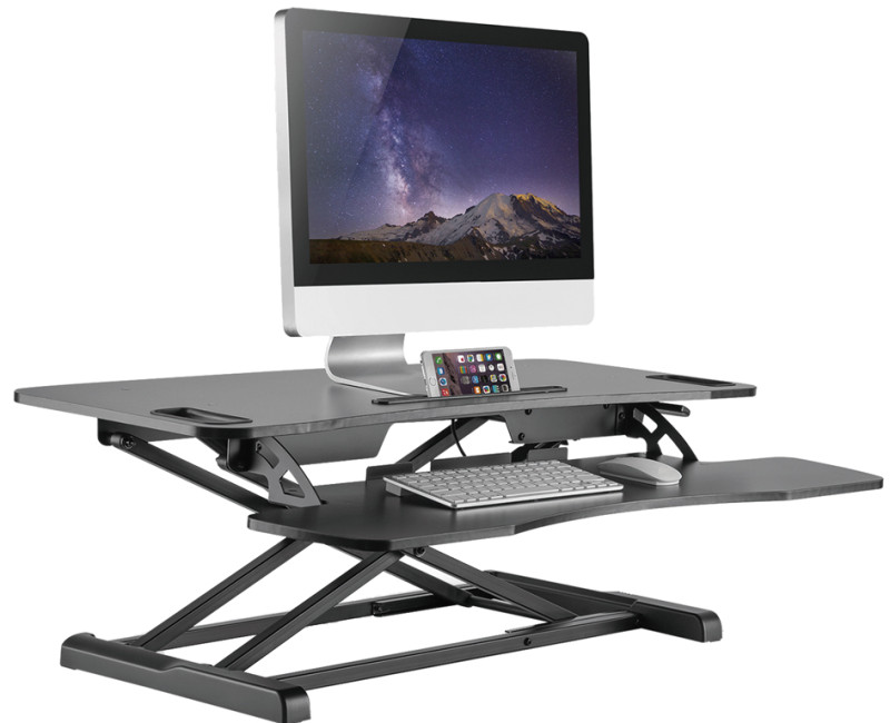 Arbeitsfläche: 950 x 620 mm, für bis zu 2 Monitore geeignet,, untere Ebene für Maus und Tastatur, höhenverstellbar, von 110 - 505 mm, Gewicht: 13,2 kg, Plattenstärke: 16 mm,, Farbe: schwarz, Maße: (B)950 x (T)620 x (H)110 mm, (DA-90380-1Rev1)