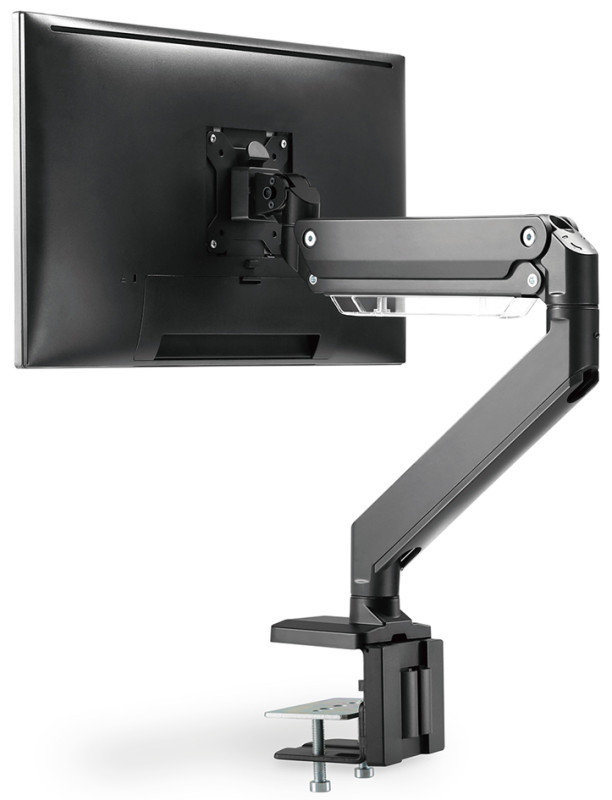 vérin à gaz, pour écrans de 43,18 cm (17") à 88,9 cm (35"), fixation standard VESA, inclinable, pivotant, rotatif,, capacité de charge: max - 15 kg, pince avec fixation à vis,, bras en acier, aluminium, plastique, couleur: noir mat, (DA-90426)