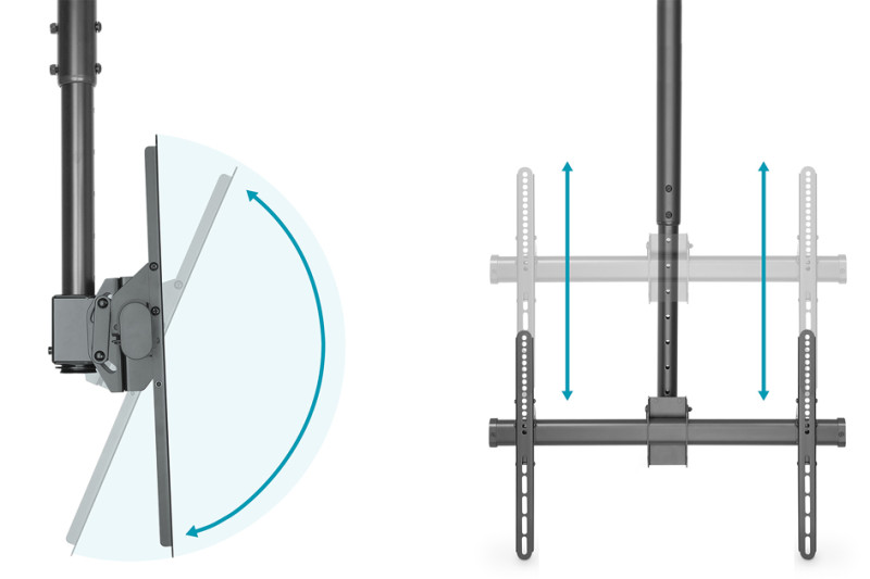 pour écrans de 96,98 à 177,8 cm (37 à 70"), capacité de, charge: max. 50 kg, réglage télescopique de la hauteur vari-, able de 560-910 mm, orientable, inclinable, pivotant, en, acier, dimensions: (L)680 x (P)435 x (H)1.130 mm, (DA-90421)