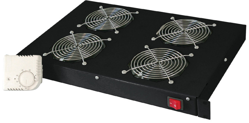 interrupteur éclaire, profondeur: 150 mm,, complet avec thermostat, réglable de 0 à 35 degrée, niveau sonore: 47 dBm, dimensions: (L)483 x (P)150 x (H)44mm, matériel de fixation inclus, couleur: noir (RAL 9005), (DN-19 FAN-4-HO-SW)