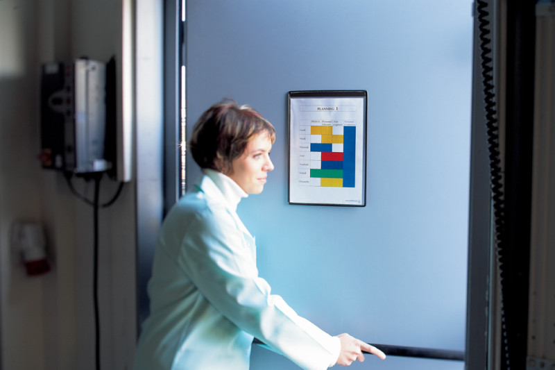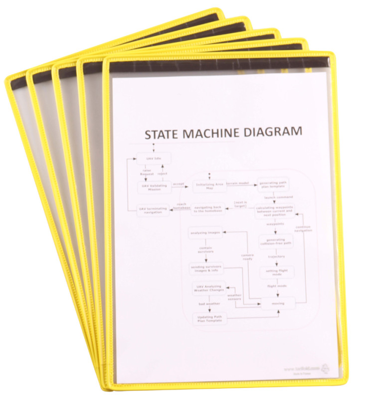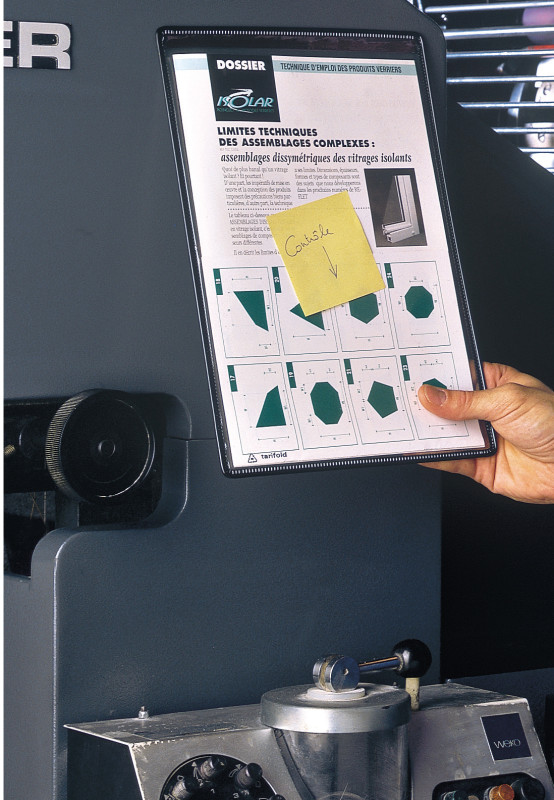 A4, en PVC, cadre en fil d'acier revêtu de plastique, anti, reflet, fixation à l'aide de bandes magnétiques, ouvert sur, le haut, dimensions: (L)230 x (P)3 x (H)327 mm, en paquet de 5 pièces, (194602)