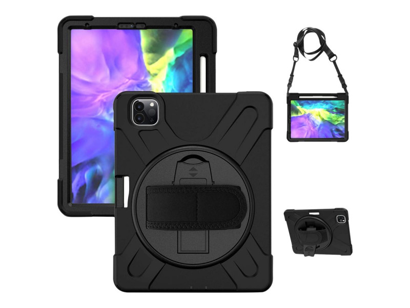Coque renforcée avec emplacement stylet, bandoulière, poignée rotative et pied support pour Apple iPad Pro 11" 2e génération (2020).