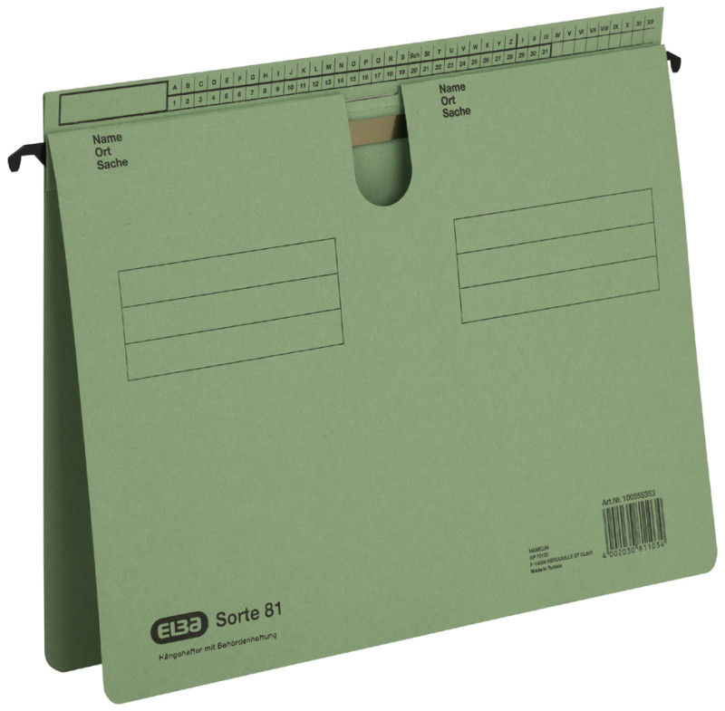 Manille carton 250 g / mètre carré, rail de suspension en métal, Kaufm. ou, Behördenheftung, Reiterfalz avec empreinte de l'organisation, emballé avec des 50 pièces (alt: 81459 BL / neu: 100555351),