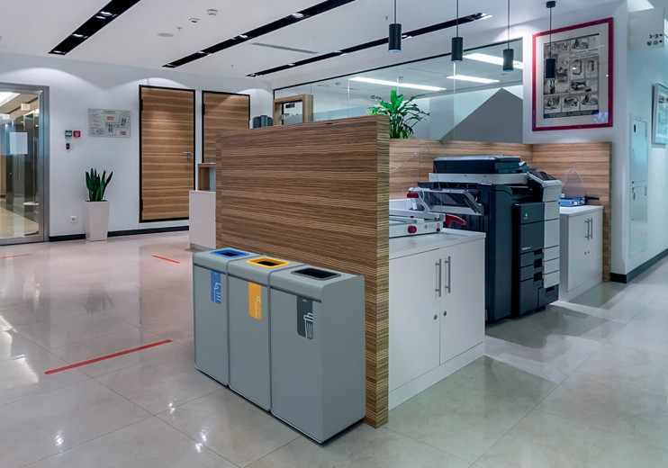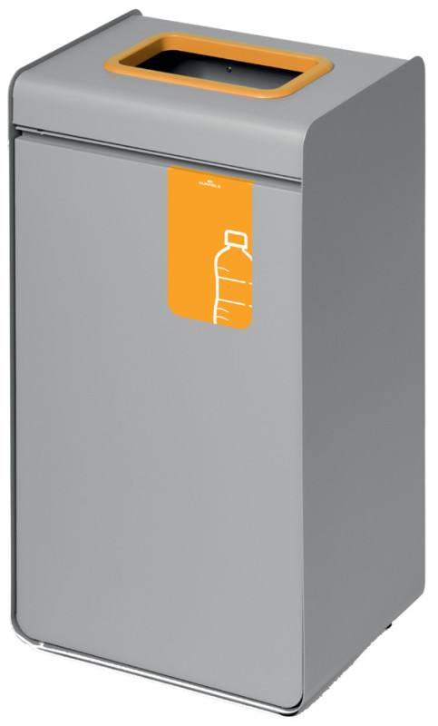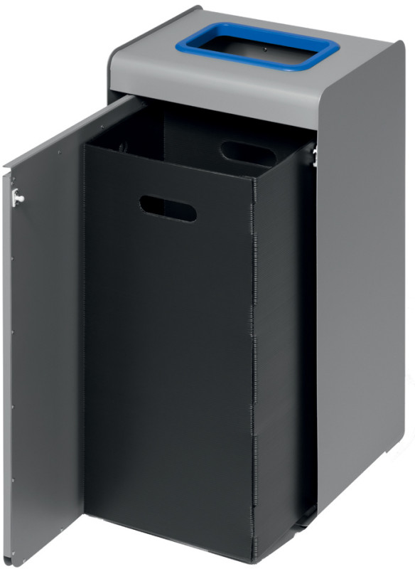 en métal revêtu par poudre, récipient intérieur plastique,, anneau coloré sur le dessus et pictogramme en façade,, ouverture de porte à poussoir, pieds réglables, gris/marron,, dimensions extérieures: (L)335 x (P)255 x (H)675 mm, (321511)