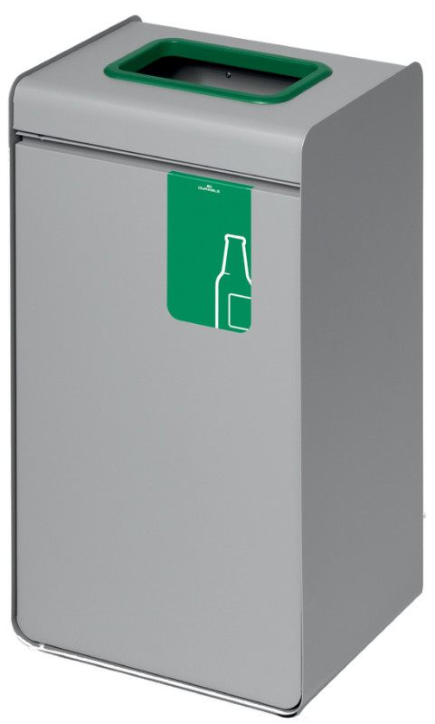 en métal revêtu par poudre, récipient intérieur plastique,, anneau coloré sur le dessus et pictogramme en façade,, ouverture de porte à poussoir, pieds réglables, gris/vert,, dimensions extérieures: (L)335 x (P)255 x (H)675 mm, (321405)