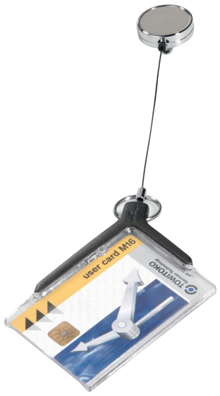 porte-carte chromé, en acrylique, avec clip en métal au, dos, pour deux badges de sécurité aux formats portrait ou, paysage, avec mécanisme d'enroulement allant jusqu'à 800 mm, contenu: 10 badges, (830858)