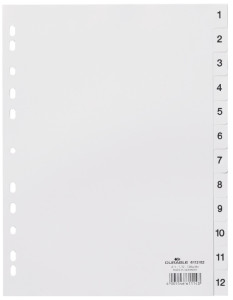 1 -12, blanc, avec onglets colorés imprimés, perforation, universelle, en PP, épaisseur:0,12mm, complètement recouvert, hauteur complète, avec couverture,, dimensions: (L)230 x (H)297 mm, (6112-02)