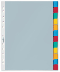 •avec onglets indéchirables de différentes couleurs, avec insertions en bristol blanc