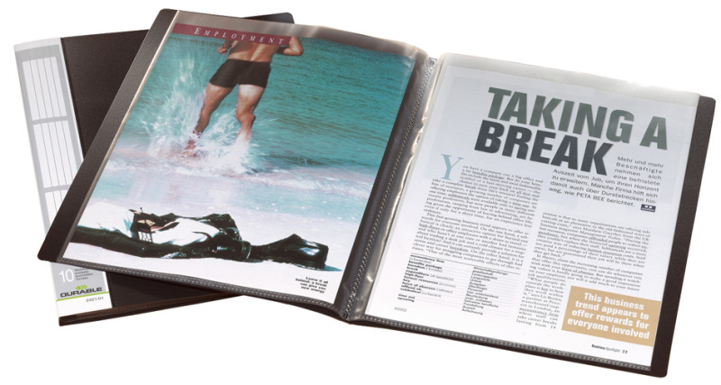 transparentes, noir, avec pochettes perforées transparentes, indélébiles et soudées en PP, étiquettes inscriptibles, au dos, largeur du dos: 9 mm, (2421-01),