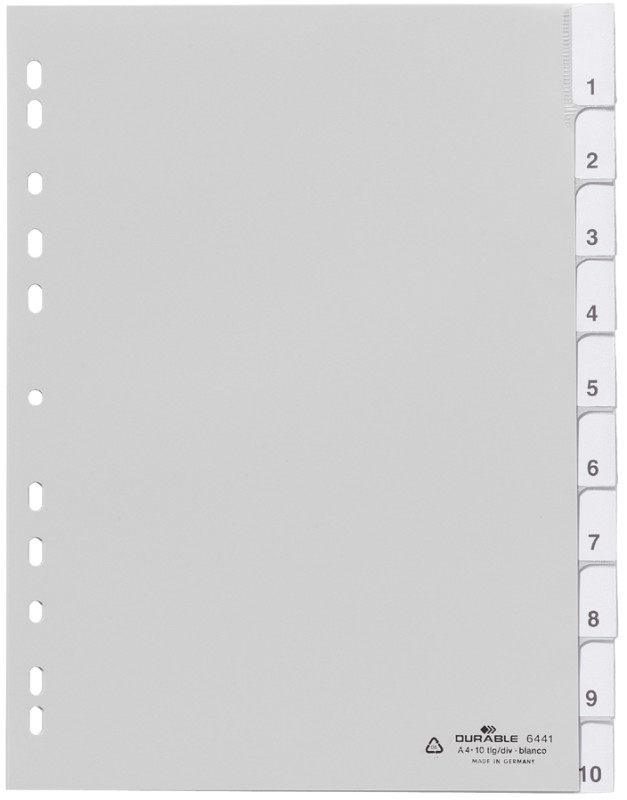 gris, uni, avec insertions en bristol unies et imprimées, 1-10, hauteur complète, entièrement recouvert, perforations, universelles, avec onglets soudés, avec couverture,, épaisseur: 0,12 mm, dimensions: (L)230 x (H)297 mm, (6441-10)