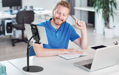 pour smartphone et tablette de 4,7" à 13" (11,94-33,02 cm), équipé d'un bras et d'une rotule flexible, hauteur réglable, en continu, pads antidérapants, sortie de câble intégrée,, dimensions du pied: 190 mm, orientable portrait/paysage, (894101)
