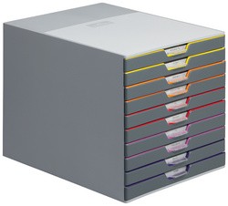 DURABLE Varicolor 10, Module de classement avec 10 tiroirs, plastique ABS, porte-étiquette transparente, pour formats A4, C4, ainsi que folio et enveloppes, patins antidérapants, différents couleurs fines, couleur gris et multicolore, dimensions (L)292 x (P)356 x (H)280 mm (7610-27)