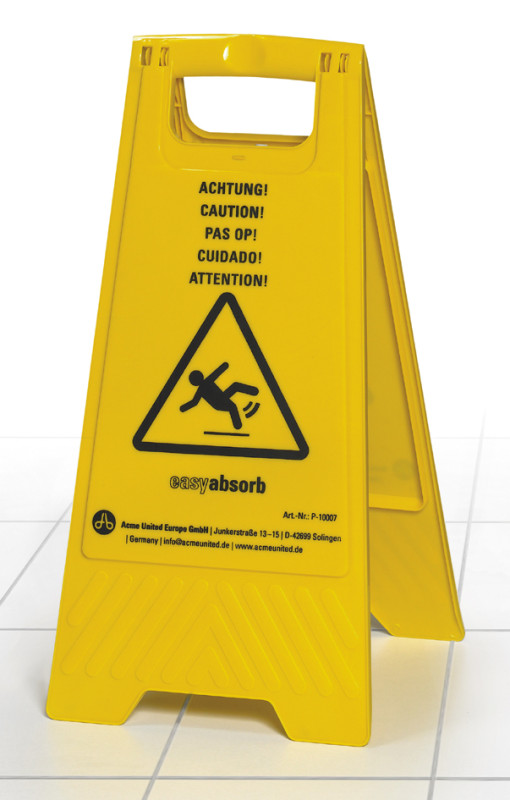 plastique, avec patte d'accrochage solide, hauteur: env., 610 mm, pliable, texte: "Attention" en 5 langues,, pictogramme: "Sol glissant", emballage: sachet plastique, (P-10007),