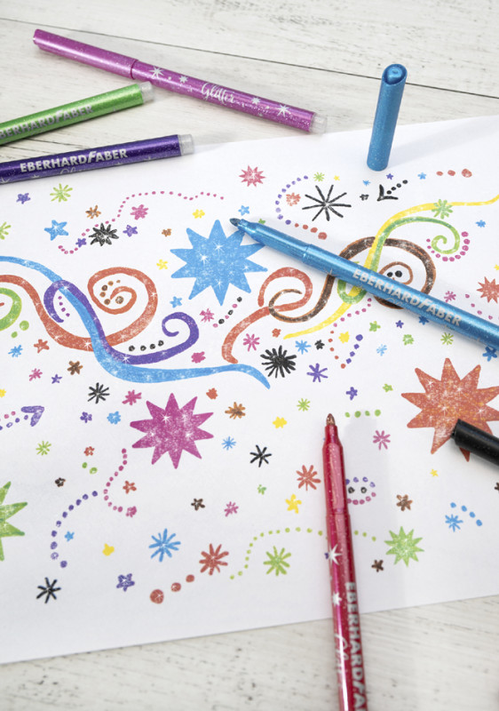 rond, largeur de tracé: 3 mm, lavable, couleurs intenses,, capuchon ventilé, lavable sur la plupart des textiles,, avec effet pailleté pour des embellissements scintillants, contenu: 8 feutres, (551008)