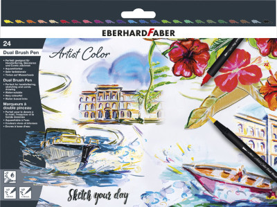 étui carton de 18, 2 pointes: 1 fine & 1 pinceau, largeur, du tracé: 0,8 mm / 1-10 mm, encre à base d'eau, encre, indélébile, résistante à la lumière et à l'eau, contenu: 18 pièces, (558218)