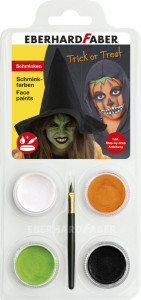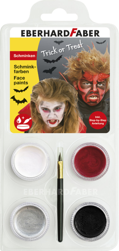 pour un maquillage Halloween effrayant, sèche rapidement,, tient particulièrement bien, démaquillage facile, suffit, pour 40 masques max., testé dermatologiquement, contenu: 4 couleurs (blanc, rouge, marron, noir) & pinceau, (579027)