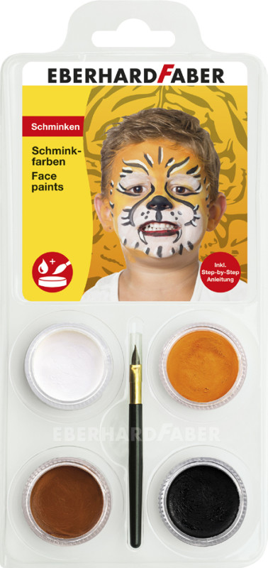 pour se maquiller en licorne, sèche rapidement, tient, particulièrement bien, démaquillage facile, suffit pour, 40 masques max., testé dermatologiquement, contenu: 4 couleurs (blanc, rose, lilas, noir) & pinceau, (579023)