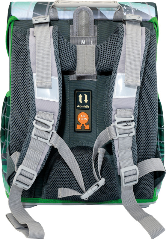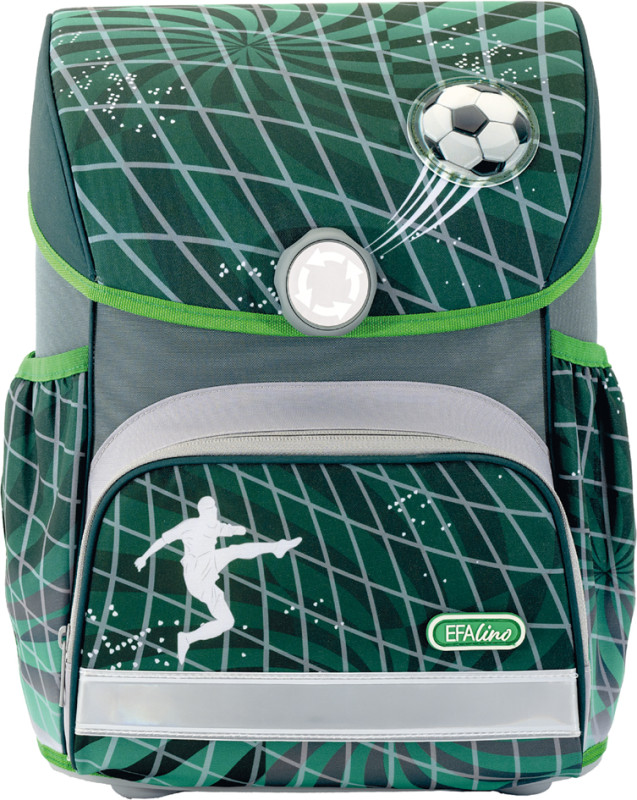 aus Polyester, Fassungsvermögen: 18 Liter, Farbe: schwarz/, grün, Motiv: Fußball, Maße: (B)335 x (T)240 x (H)400 mm,, Set bestehend aus: Schulranzen, 25-teiligem Schüleretui,, Schlamperrolle & Sportbeutel, (577661)