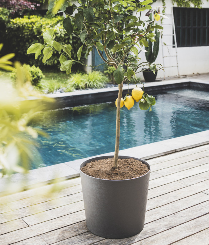 hauteur: 420 mm, volume de terreau: 62 L, aspect minéral, naturel, en plastique recyclé à 100%, robuste et durable,, peut aussi servir de cache-pot, fond avec relief pour la, stabilité et l'aération, (022057 V.KA SX6)